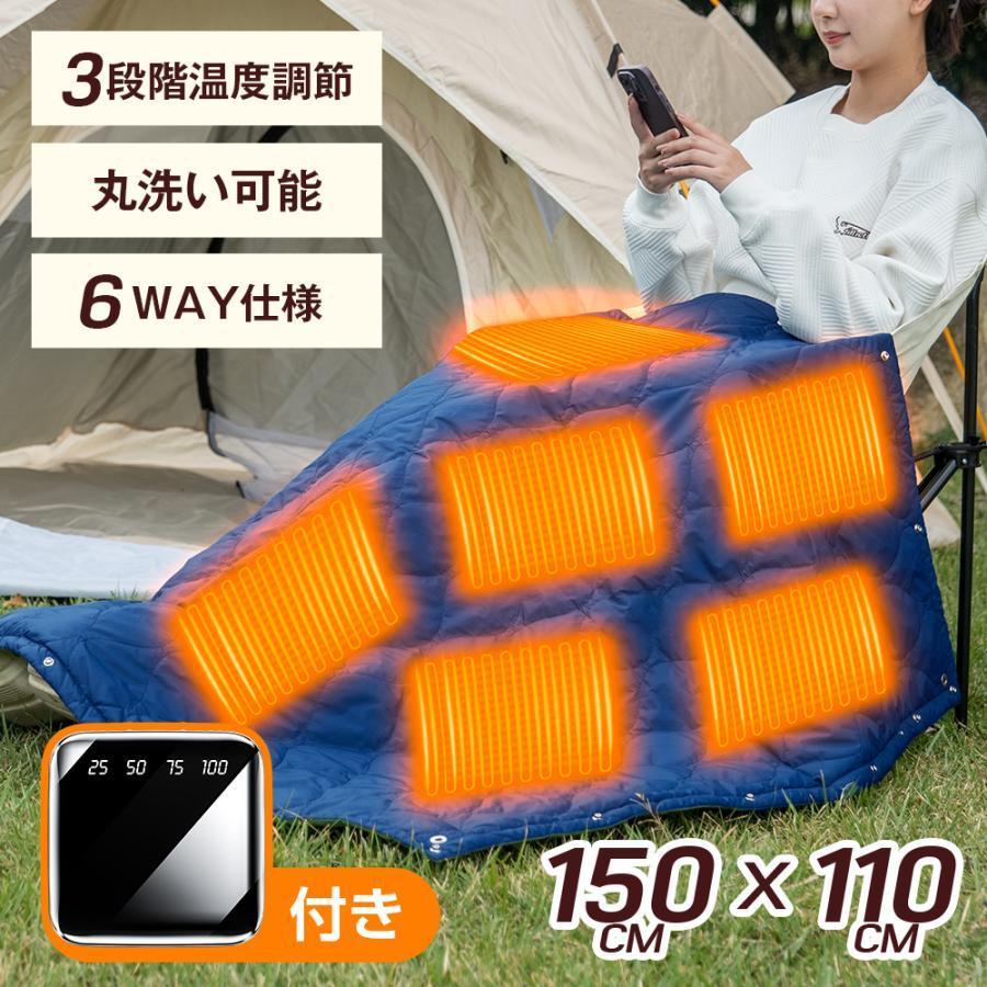 電気毛布 日本製10枚ヒーター 6WAY兼用 モバイルバッテリー付き 3段階温度調節 着る毛布 ひざ掛け 肩掛け USB給電タイプ 丸洗い可能 USB給電タイプ 着るコタツ