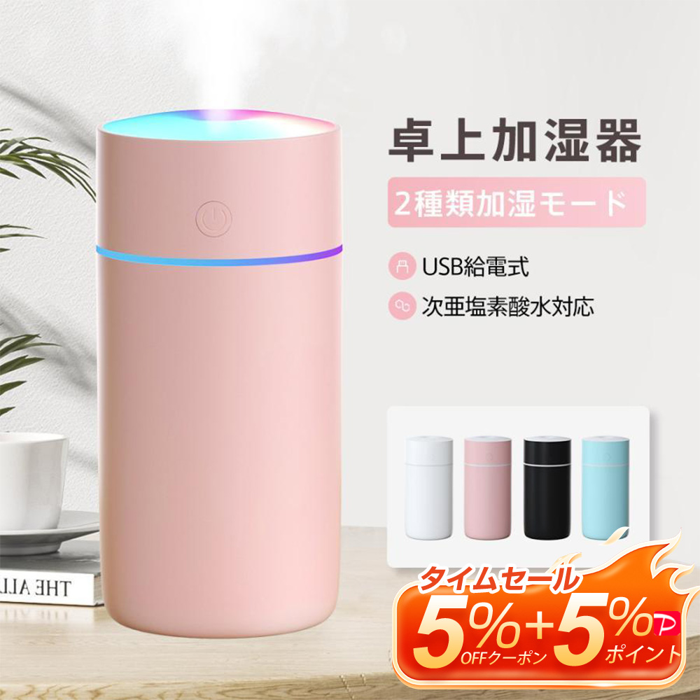 加湿器 七色LED 2種類加湿モード 350ml 大容量 卓上加湿器 小型 空気清浄機 次亜塩素酸水対応 アロマ対応 除菌対応 空焚き防止 乾燥防止 お手入れ簡単