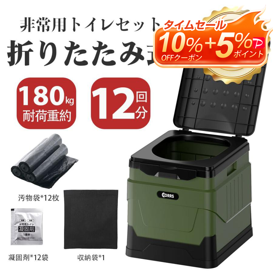 簡易トイレ 折りたたみ式 非常用トイレセット 12回分 ポータブルトイレ 携帯トイレ 防災トイレ 災害用 防災グッズ 耐荷重180kg 凝固剤 断水時 登山用 介護用