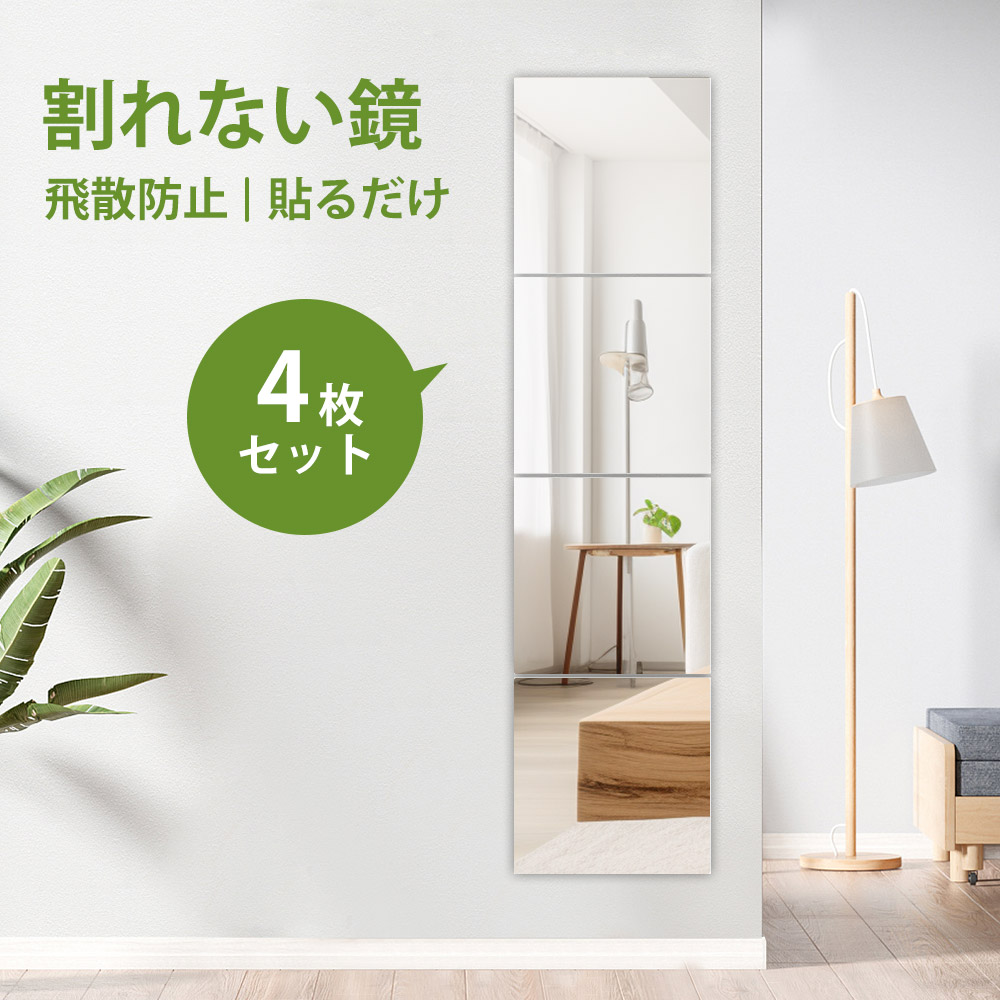 アクリルミラー 割れない鏡 貼る鏡 姿見鏡 貼る鏡 30cm*30cm 4枚セット 貼れる 飛散防止 割れない 鏡貼 浴室 化粧 壁 装飾ミラー 取り付け簡単 DIY自由組合