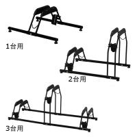 沖縄 離島へは配達できない商品です。ご注文は一旦1台用の価格4980円でシステム上完了しますが後程選択に応じて価格が修正されてメールが送信されます。(1台用4980円、2台用6300円、3台用7998円)。3台用と2台用はスタンド間の間隔を段階的に広げて設置することが可能です。地面の凸凹に合わせて高さを調節できるアジャスター付きです。プラスチックのタイヤ受けとカバーが付いているので、自転車への当たりがソフトです。スタンドが動かないように地面と固定する部品が4個付いています。素材本体スチール(ポリエステル粉体塗装)カバー、タイヤストッパー。エンドキャップポリプロピレン。アジャスター合成ゴム。3台用 商品サイズ(約mm)W1071×D430×H475。商品重量(g)3450。2台用 商品サイズ(約mm)W651×D430×H475。商品重量(g)2380。1台用 商品サイズ(約mm)W510×D430×H220。商品重量(g)1415。