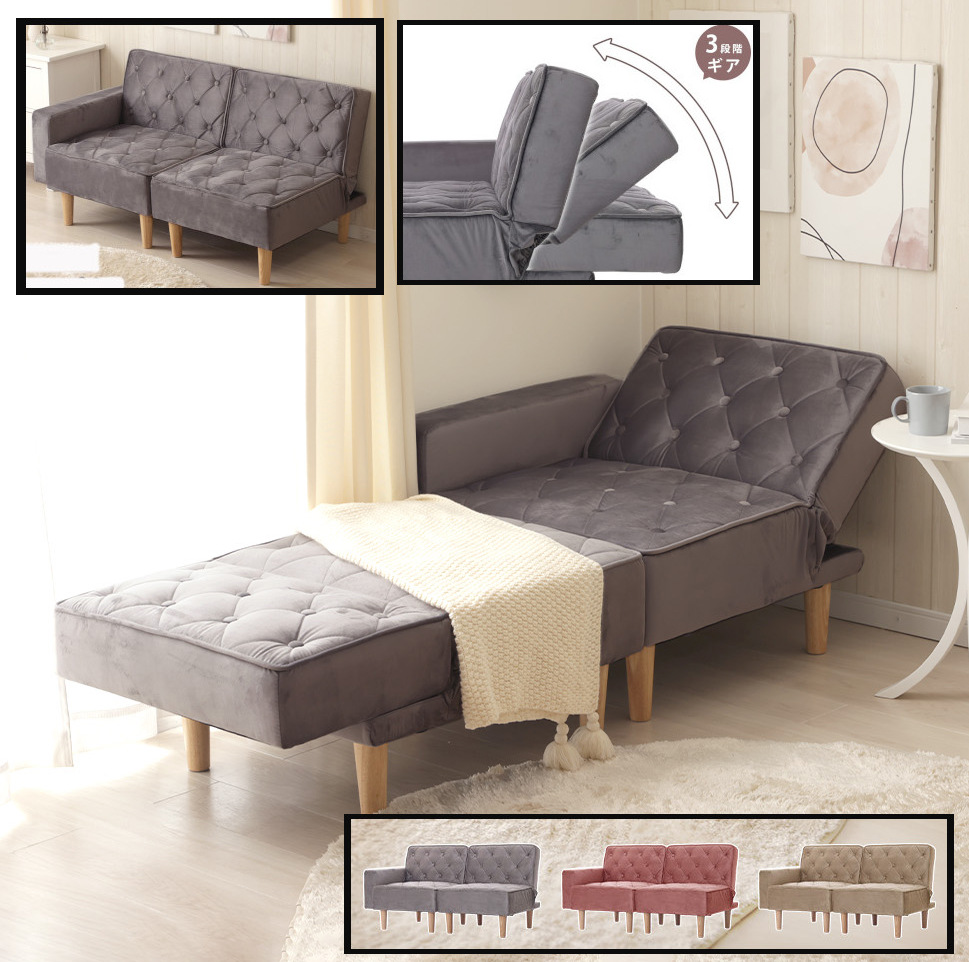 リクライニングソファー ソファベッド デイベッド シェーズロング 長椅子 フルフラット対応 脚取り外し可能 ベロア調ファブリック