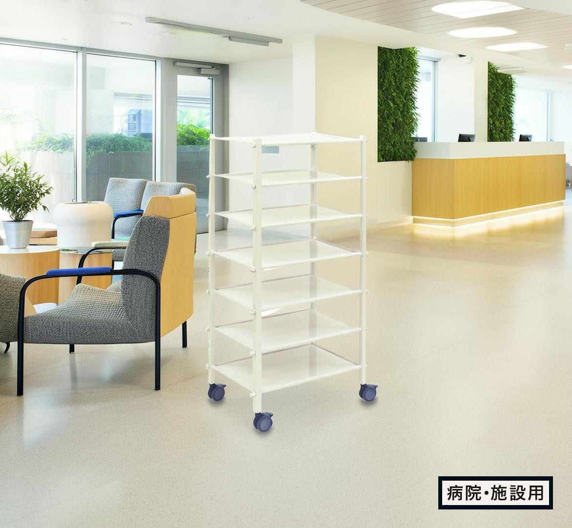 北海道は別途送料が必要。沖縄 離島は配達不可。個人宅は不可。法人名かお店 施設の名前が必須です。7段式で様々な用途に対して多目的に活用できる頑丈な業務用ワゴン。直径7.5cmの双輪キャスター付き。便利な対角ストッパー式を採用。幅55cm奥行36cm高124cm。重量24kg 総耐荷重60kg。お客様組み立て式