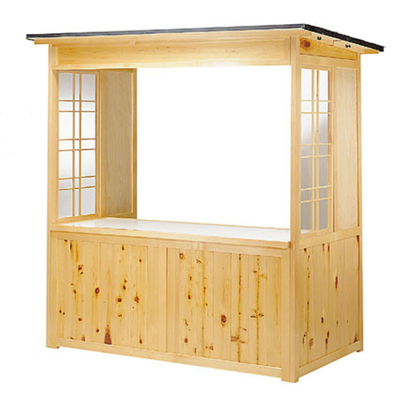 受注生産の為約2週間かかります。沖縄 離島へは配達不可です。北海道等一部地域は別途送料が必要です。商品仕様や細部は改善の為予告無く変更する場合がございます。屋外用販売屋台。はめ込み式のノックダウン構造で組立がとても簡単です。本体180x122x高204cm。天板173x62.5cm。ウレタン仕上げ。トタン屋根仕様。天板メラミン化粧板。