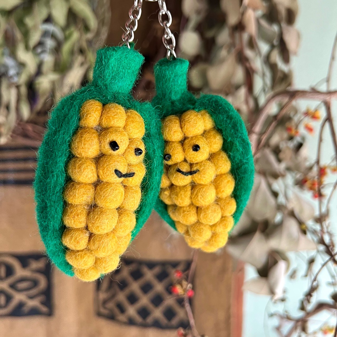 フェルト素材の可愛らしい、とうもろこしキーホルダー♪