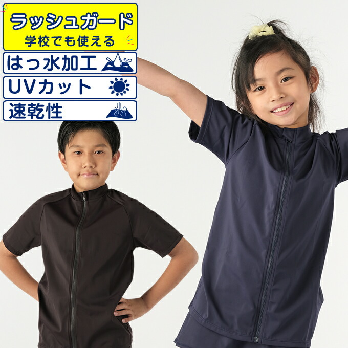 検索ワード:半そで 女の子 男の子 女子 男子 子ども 小学校 ジェンダーレス水着 前開き ジッパー UVカット UPF 紫外線