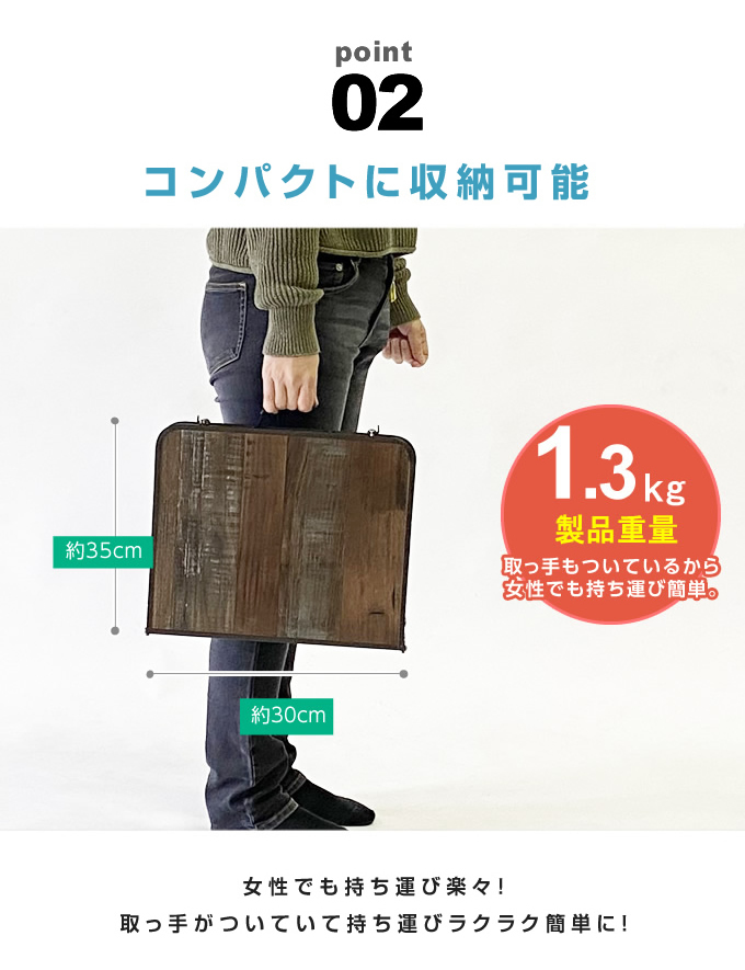 持ち運びに便利な薄型収納の2つ折りミニテーブル