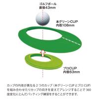 カップの内径が異なる2つのカップ(本体グリーンCUPとプロCUP)を組み合わせたりカップの向きを変えてアレンジすることで360度変化に富んだパッティング練習をすることができます。