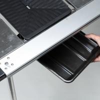 板+網ではなく、「鋳鉄」のグリドルを直接熱します。もちろん、余分な脂が水皿に落ちる設計で、煙の発生を最小限に抑えます。そしてキャンパーの悩みである網の清掃の負担を大幅に減らしてくれます。