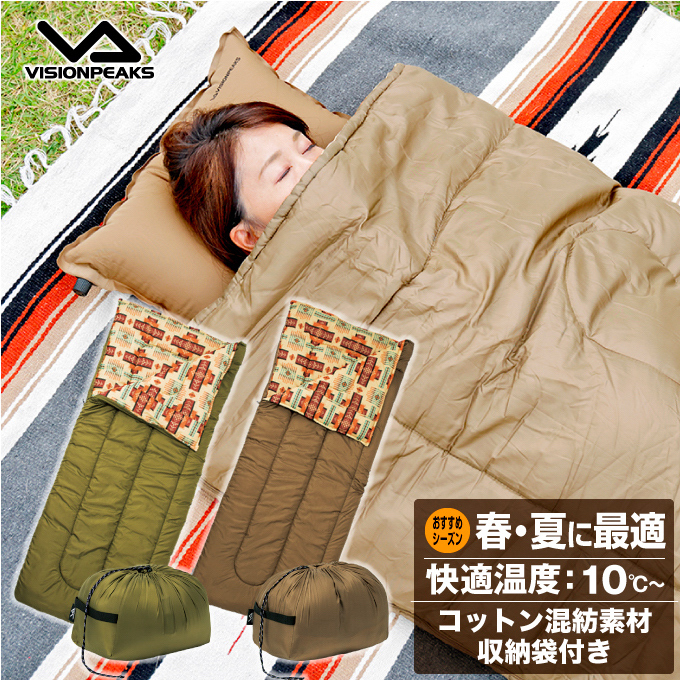寝袋 シュラフ コットン混紡素材 快適温度10度 190×幅約80cm 連結可 洗濯可 収納袋付き 封筒型 TCシュラフ10 VP161001H02 ビジョンピークス VISIONPEAKS