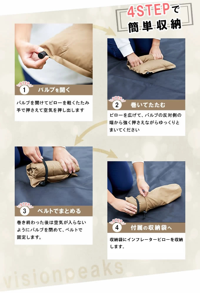 ☆アウトドア まくら ピロー インフレーターピロー 枕 VP160309J03 ビジョンピークス VISIONPEAKS