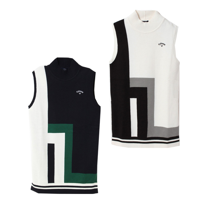 キャロウェイ ゴルフウェア ニットベスト レディース ブロックインターシャニットロングベスト WOMENS C22219202 Callaway 【2022年秋冬モデル】
