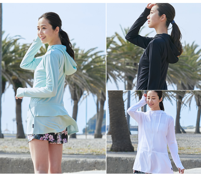 検索ワード:長そで 女性 スイムウェア ラッシュガード プール マリンウエア おしゃれ 紫外線対策 紫外線防止 日焼け対策 黒 ブラック 白 ホワイト ミントグリーン パステル 夏 海 海水浴 水着 UVカット UV 軽量 薄手