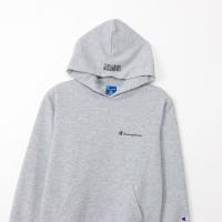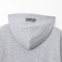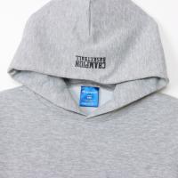 環境に配慮されたリサイクルポリエステル100%の吸汗速乾機能を備えた素材で、従来のコットン100%に比べて形状安定性に優れた生地を使用したジュニアフーデッドスウェットシャツです。左胸にはChampion(チャンピオン)ロゴ、フードには「CHAMPION BASKETBALL(チャンピオン バスケットボール)」を、それぞれラバープリントで入れています。同じグラフィックを使用し、同じカラーバリエーションを揃えたスウェットパンツ(CK-AB216)も展開しているので、セットアップでの着用もオススメです。