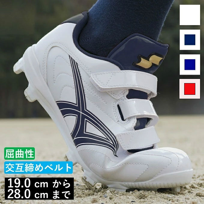 エスエスケイ SSK 野球 ポイントスパイク メンズ ジュニア マジックテープ 白 ポイントブロックソール 少年 スタッド ベルトスターランナーMCL SSF4200BL