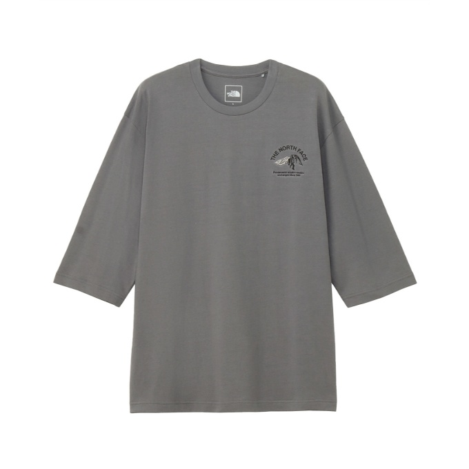胸元にワンポイントのロゴを施した、七分袖のTシャツ。