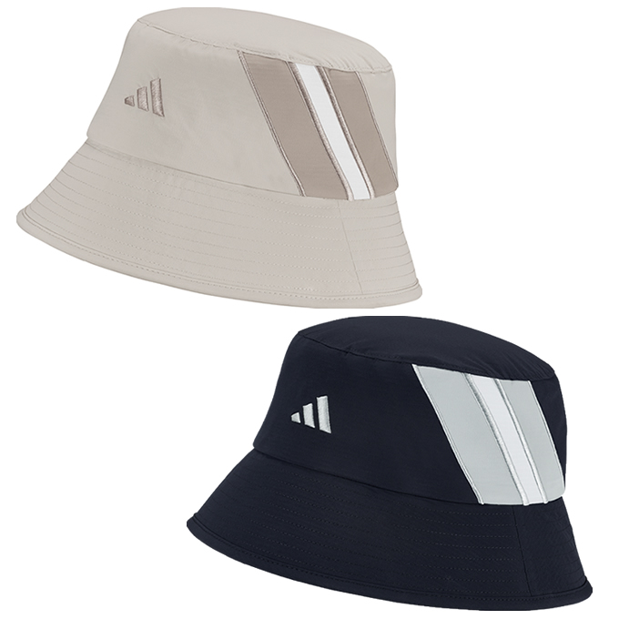 軽い雨にも対応できる撥水素材を採用したバケットハットが登場。後頭部のドローコードで好みのフィットに調節可能。サイドにティーホルダー付き。AEROREADYスウェットバンドを備え、積極的に汗を拡散する。