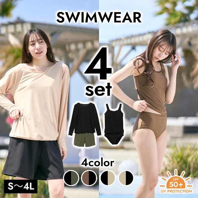 水着4点セット レディース タンキニ 体型カバー セパレート ラッシュガード EC610312D52 【ご自宅配送限定】‥