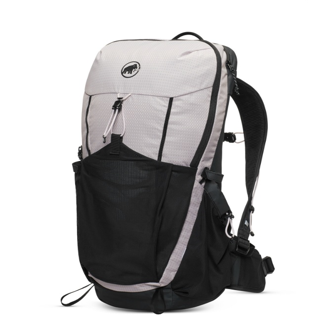 出し入れしやすいフロントメッシュポケットに加え、ウォーターボトル用のサイドポケットが複数配置されているので必要なものがすぐに取り出せ、取り外し可能なレインカバーが雨や雪から装備を守ります。