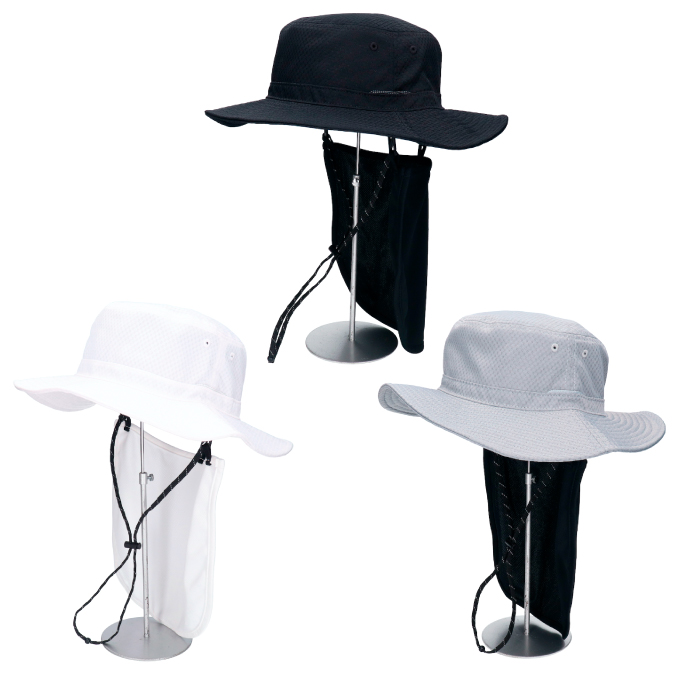 取り外し可能な日除け垂れとあご紐が付き、夏のアウトドアシーンにも被ることができます。