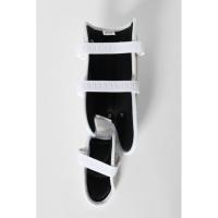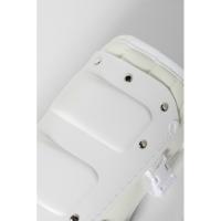 スネとの密着性を高めるため、パッドの裏側に山脈型の凸部を2 本配置し、運動時に起こる「ズレ」を防いでいます。また、大型サイドパッドで防御性とフィット性を高めています。