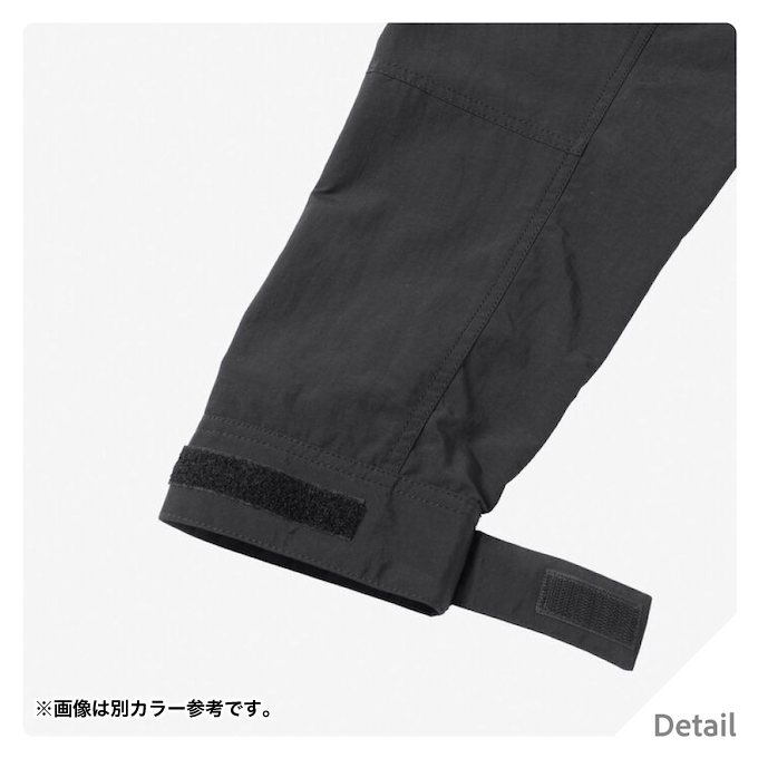 表地にはクラシカルでやわらかな風合いのタスランナイロンを使用。裏地は肌離れのよいポリエステルメッシュで、生地が汗で張りつくのを抑えます。裾は両脇のアジャスターで簡単に調節可能。フロントフラップはドットボタン仕様です。
