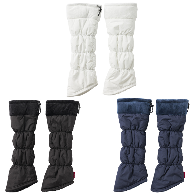 表エステルタフタ・裏マイクロベルボアの、防寒に役立つ中綿あったかレッグウォーマーです。