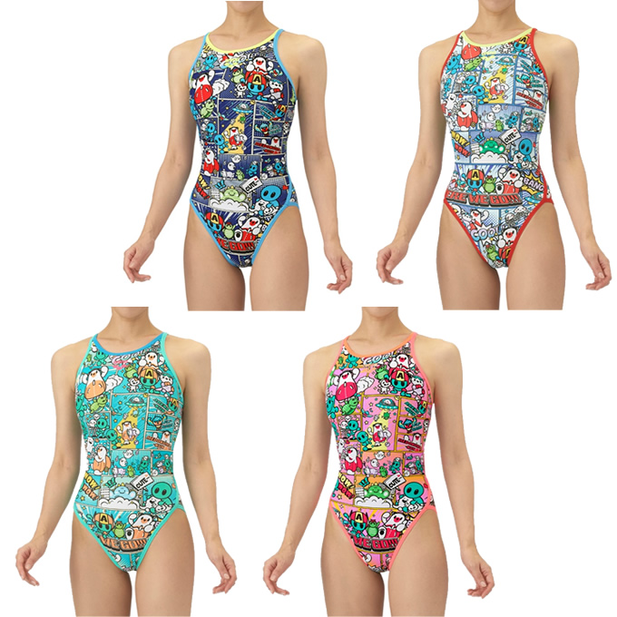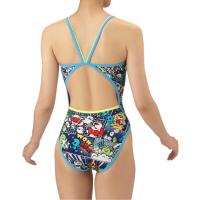 トレーニングカテゴリー「TOUGHSUITシリーズ」。ジュニア用サイズ大会に向けて練習を重ねる頻度が高いスイマーにオススメの練習用水着。環境に配慮したリサイクルポリエステル素材「タフスキンEP」を使用し塩素に強く長持ち。全てのスイマーに人気のアリーナくんの総柄ワンピースタイプ。AS5FWM00Lで展開するテーマ(宇宙や地球)と連動する冒険物語。アメリカンコミック調の柄は鮮やかな色合いとダイナミックな線が特徴でインパクトのあるデザイン。アリーナくんたちと地球外生命体(怪獣、宇宙人、お化け)が出会い、友達になる過程をプリントに表現。地球を守る戦隊ヒーロー風のスタイルを取り入れることで、アリーナくんたちのチームとしての一体感を演出。カラフルな4配色の展開。前身頃、後身頃共に黒の裏地付き。*この商品は縫製上、一点一点プリント柄の見え方に違いが生じますので予めご了承ください。