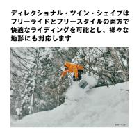 柔らかいフレックスと安心して上達できる構造を備えた初心者に優しいボード。バイトフリーエッジとフラットアウトキャンバーを搭載したディレクショナルツインシェイプがフリーライドの上達をサポートします。
