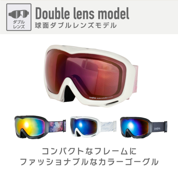 コンパクトなフレームにファッショナブルなカラーゴーグル 球面ダブルレンズモデル