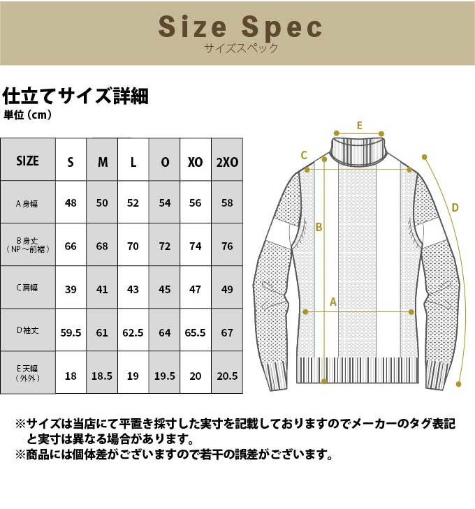 S ( 身幅/48cm、身丈(NP〜前裾)/66cm、肩幅/39cm、袖丈/59.5cm、天幅(外外)/18cm )