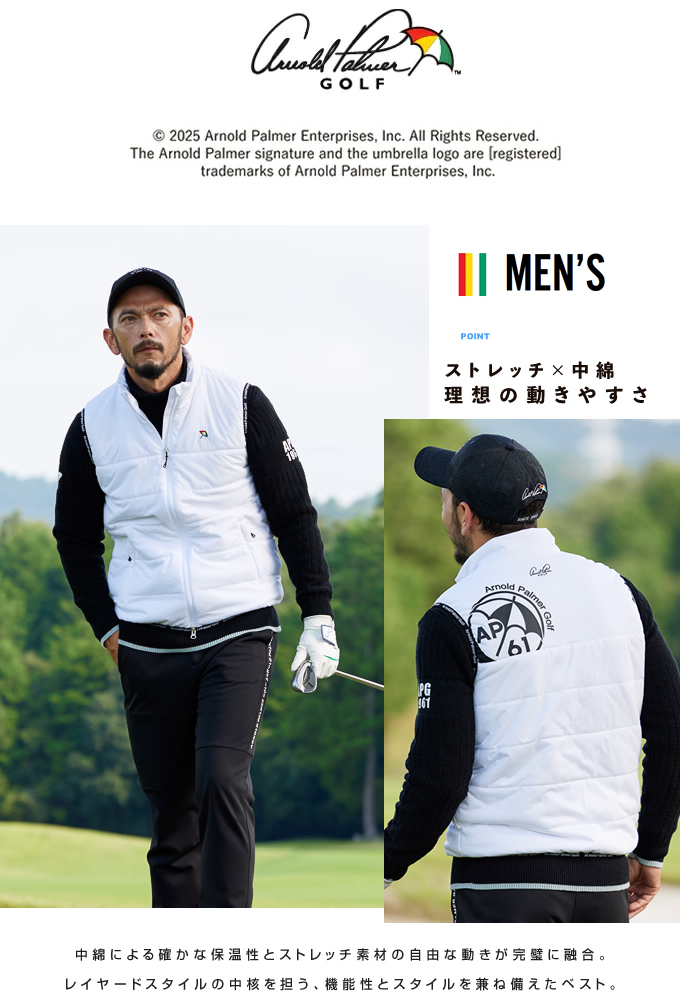アーノルドパーマー ゴルフウェア アウターベスト メンズ ストレッチ中綿VS AP220203E02 【2025年秋冬モデル】