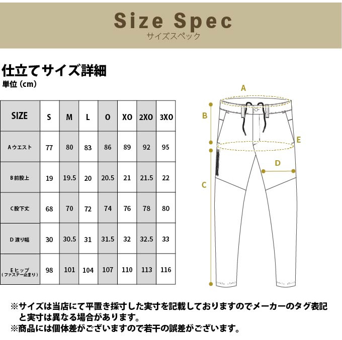 3XO ( ウエスト/95cm、前股上/22cm、股下丈/80cm、ワタリ幅/33cm、ヒップ(ファスナー止まり)/116cm )