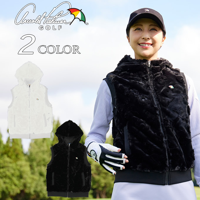 アーノルドパーマー ゴルフウェア ベスト レディース ジャガードエコファーVS ファーベスト フード AP220403E02 【2025年秋冬モデル】
