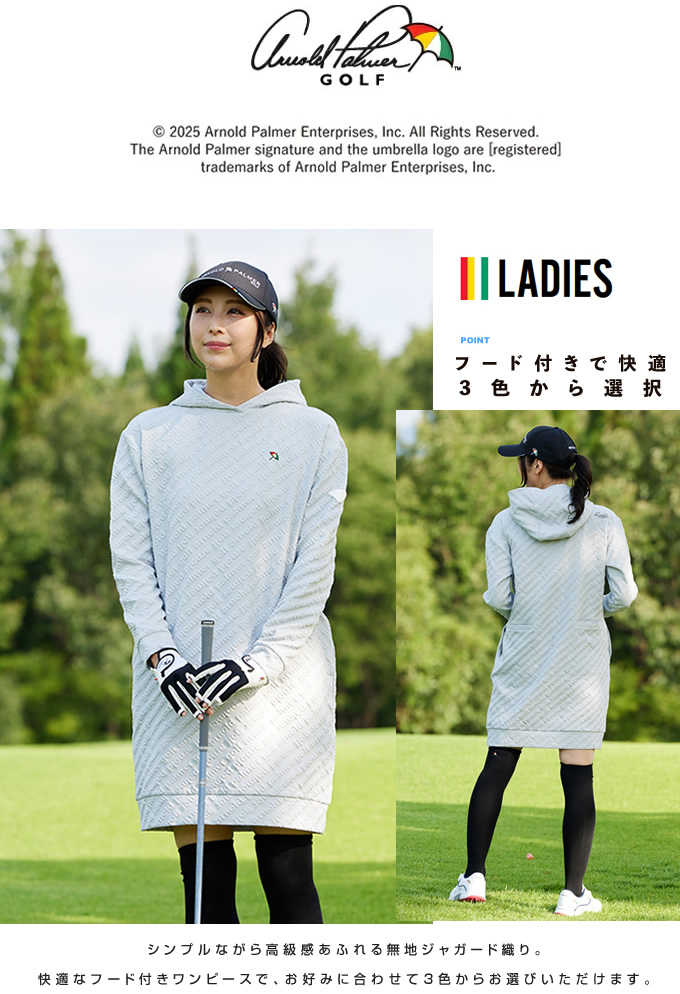 アーノルドパーマー ゴルフウェア ワンピース レディース 無地ジャガードシャツフーディワンピース AP220412E02 【2025年秋冬モデル】