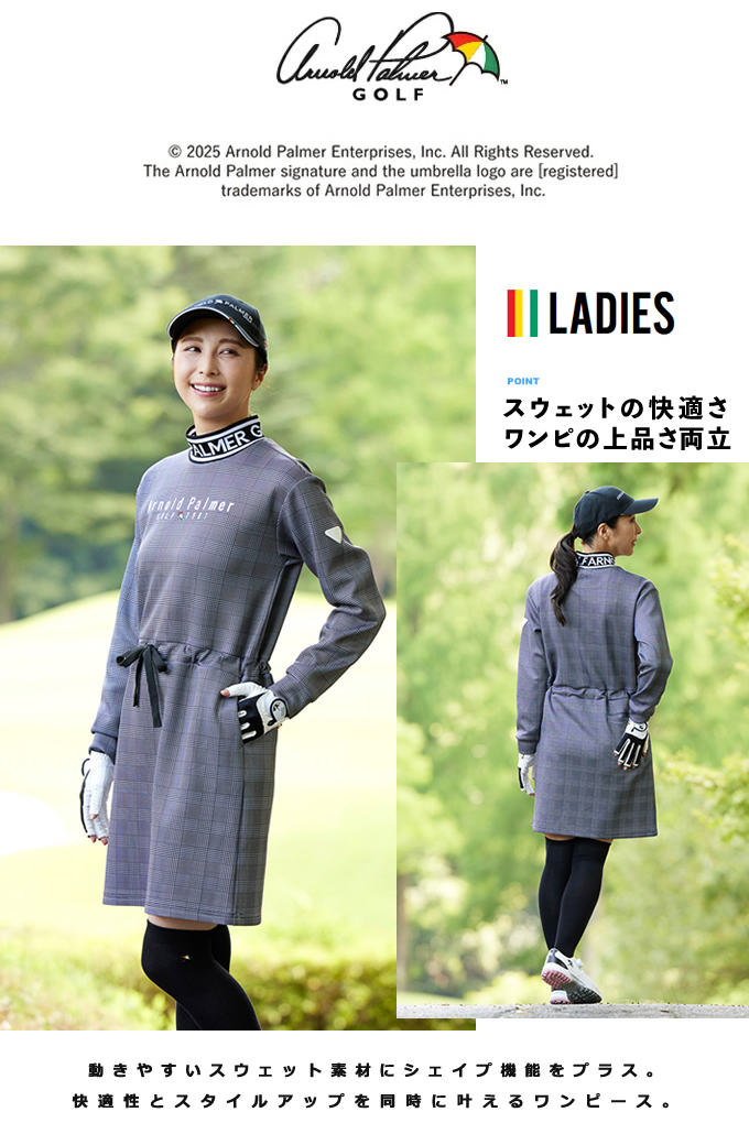 アーノルドパーマー ゴルフウェア ワンピース レディース スウェットシェイプワンピース 黒 くろ ブラック AP220412E03 【2025年秋冬モデル】