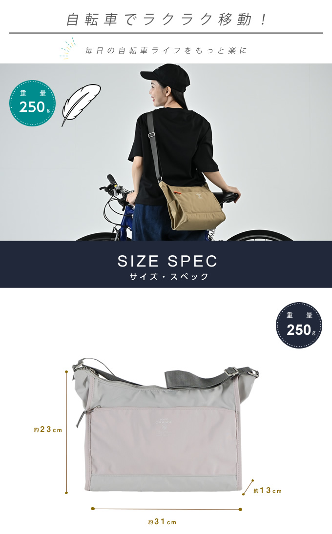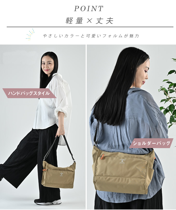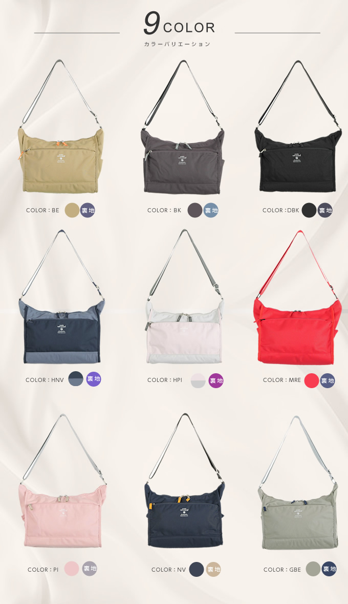 やさしいカラー展開のCABIN(キャビン)シリーズ。可愛らしいフォルムと優しいカラーで、あらゆるシーンで使えるベーシックなアイテムです。驚くほどの軽さで、強撥水のため雨の日でも安心。10ポケットで小物が散らばることもなく、マチが大きめでたくさん入るので収納力もあります。日常使いからお出かけにも使えるアイテムです。