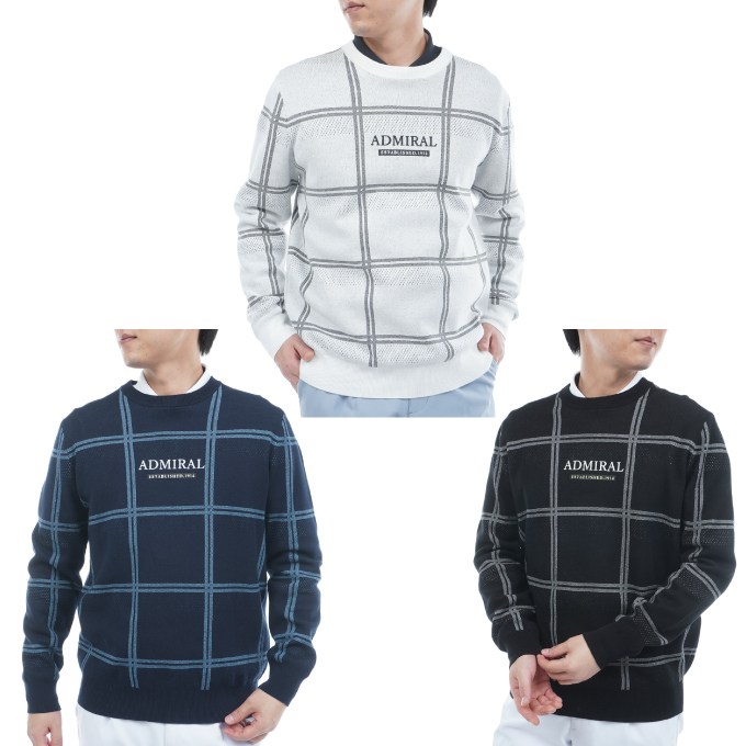 アドミラル(Admiral) ゴルフウェア セーター メンズ ウィンドウペンクルーネックセーター ADMA558 【2025年秋冬モデル】