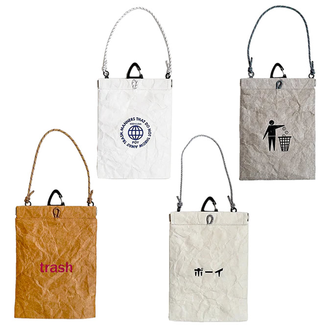 外出先で出てしまうちょっとしたゴミを”ポーイ”っと入れることができる携帯ゴミ箱 POY(ポーイ)に大きめサイズの携帯ゴミ箱ポーチ、POYラージが登場!マチがあるので見た目以上のゴミが入れられます。子供連れの時や、犬の散歩、車内のちょっとしたゴミ入れなどにおすすめのサイズ感。紙のような質感とアイコンデザインがかわいいタイベック素材のPOYです。