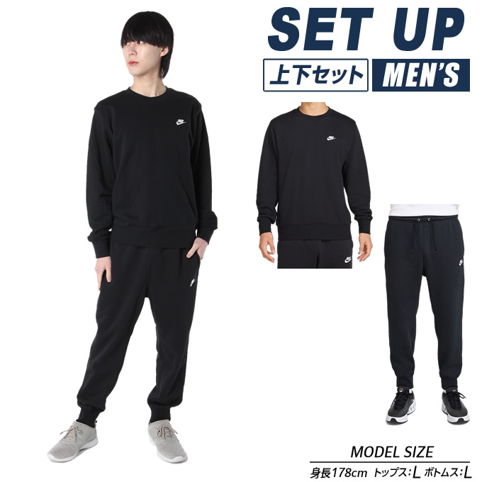 ナイキ スポーツウェア スウェット 上下セット メンズ NSW CLUB 裏毛クルースウェット+NSW CLUB 裏毛スウェットジョガー FN3889-010+FN3802-010 NIKE
