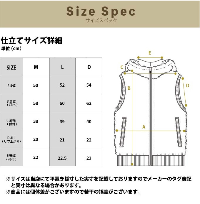 M ( 身幅/50cm、身丈(CB〜)/58cm、肩幅(付付)/38cm、AH(リブ上がり)/20cm、天幅(付付)/22cm )