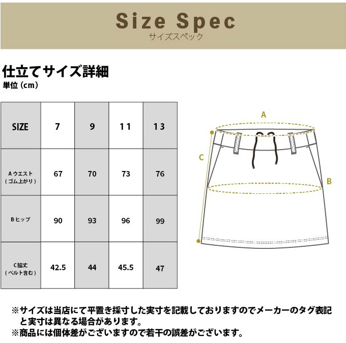 7 ( ウエスト(ゴム上がり)/67cm、ヒップ/90cm、脇丈(ベルト含)/42.5cm )