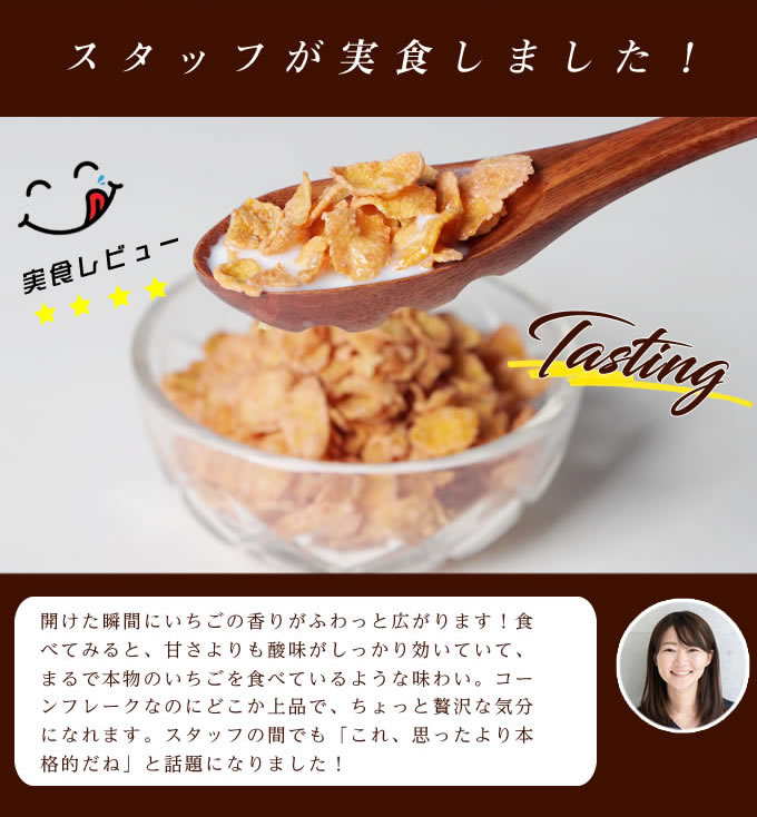 いちご果汁を使用した自然の甘みと酸味を感じるコーンフレーク