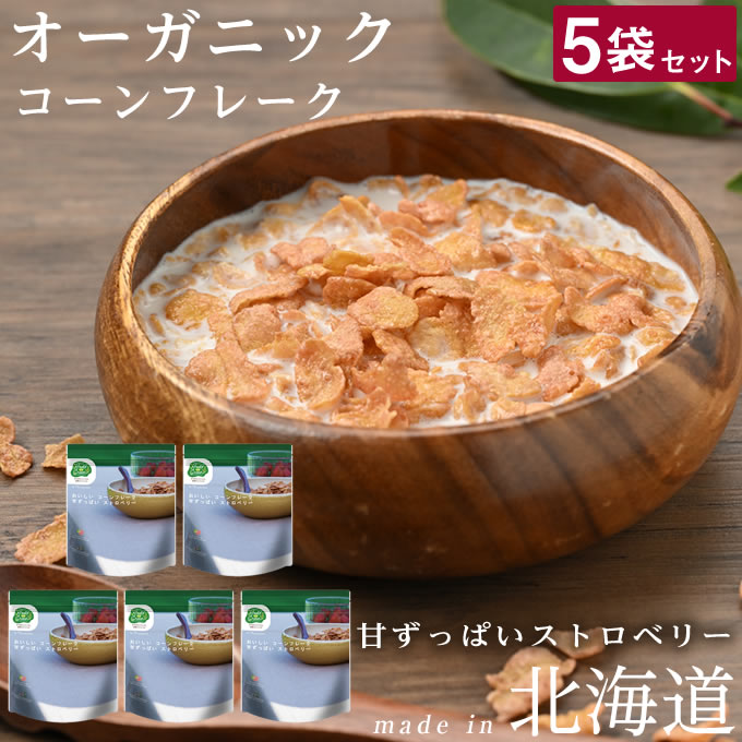 【5袋セット】日食 おいしいコーンフレーク 甘ずっぱいストロベリー 140g TO0118 日本食品製造 【ご自宅配送限定】‥
