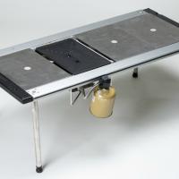 板+網ではなく、「鋳鉄」のグリドルを直接熱します。もちろん、余分な脂が水皿に落ちる設計で、煙の発生を最小限に抑えます。そしてキャンパーの悩みである網の清掃の負担を大幅に減らしてくれます。