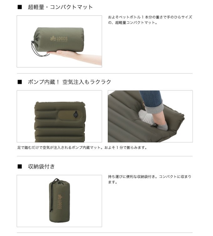 ロゴス LOGOS マット 小型マット エアライトマット ポンプ内蔵 72884410 od
