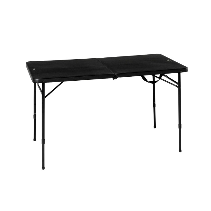 防水天板・樹脂塗装フレームで雨に強くタフに使える折りたたみ式テーブルファミリーにおすすめの天板幅120cmサイズ高さ3段階調節でお好みのスタイルにジャストフィット■カラー:ブラック■外形寸法:幅122.1×奥行き61.2×高さ71.0/62.2/53.7cm■収容寸法:幅62.4×奥行き61.2×高さ6.1cm■製品重量:約5.6kg■耐荷重:約100kg(天板に均等に静止荷重を加えた場合)■材質:甲板の種類/ポリプロピレン構造部材/金属(スチール)構成部材の表面加工/エボキシ樹脂塗装検索ワード:アウトドア キャンプ BBQテーブル バーベキューテーブル