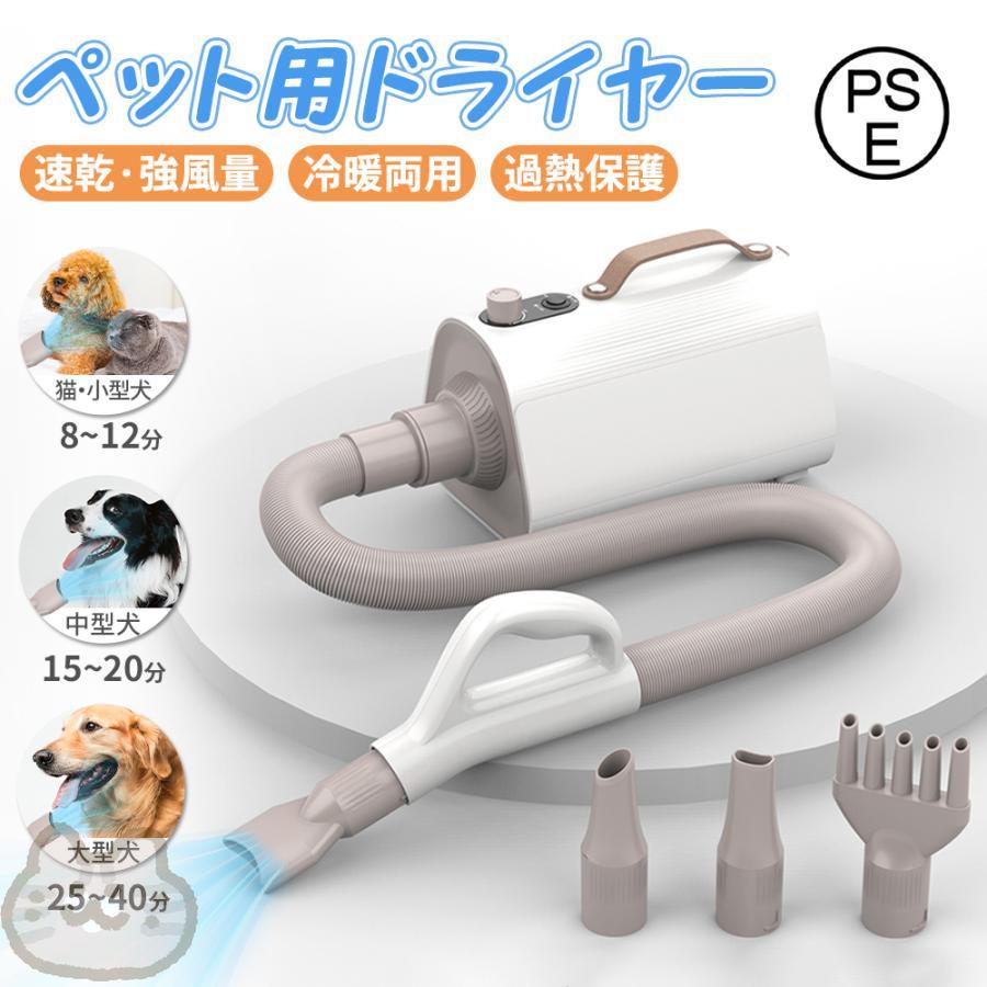 ペット用ドライヤー 犬用ドライヤー 強力風量 温度調節 4つノズル付き ホース 安全保護機能 静音 犬猫対応 温度調整 大風量 乾燥機 業務用 犬 ブロワー