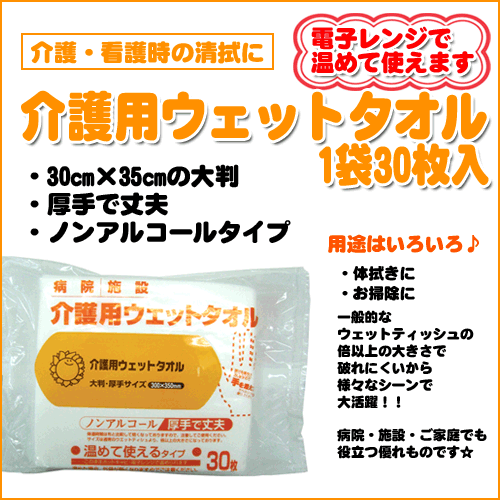 ひまわり 介護用ウェットタオル (やわらかホットタオル) 1袋30枚入 ”温めて使えます”H00001