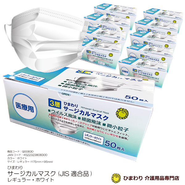 不織布マスク 50枚入×20箱 合計1000枚 サージカルマスク JIS適合品 レギュラーサイズ175×95mm ひまわり 99%カットフィルター PM2.5対応 ウィルス 細菌 花粉
